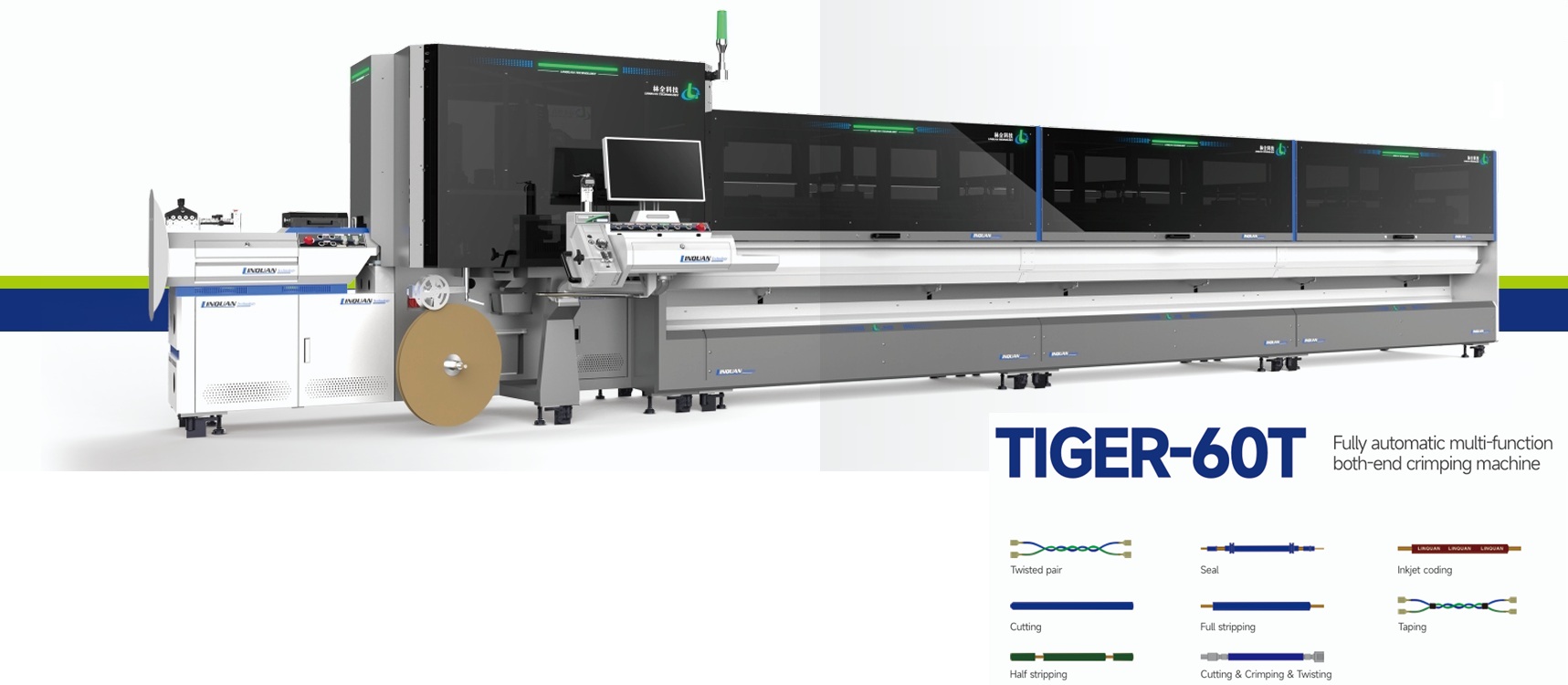 Alimentación automática de cable, corte de longitud fija, desforrado de ambos extremos, troquelado de ambos extremos, dos cables trenzados, ajuste automático de la altura de prensado, corte NG terminal, descarga de productos defectuosos a través de la inspección CCD.